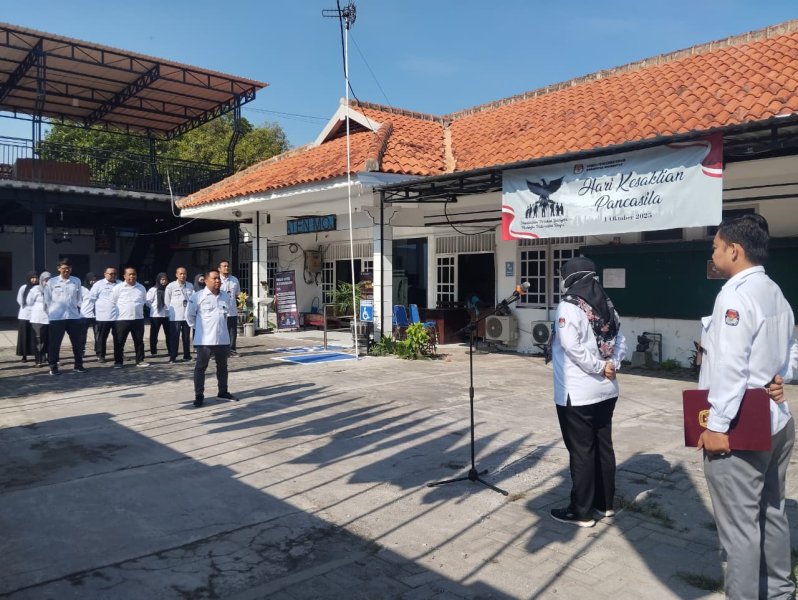 Mojokerto, kab-mojokerto.kpu.go.id – Komisi Pemilihan Umum (KPU) Kabupaten Mojokerto melaksanakan apel pagi rutin pada Senin (20/10/2025) di halaman kantor KPU Kabupaten Mojokerto. Kegiatan ini diikuti oleh para komisioner, sekretaris, kepala subbagian, pejabat fungsional, serta seluruh staf sekretariat. Apel pagi kali ini dipimpin oleh Anggota KPU Divisi Hukum dan Pengawasan, Dwi Wahyudi, yang bertindak sebagai pembina apel. Dalam amanatnya, Dwi Wahyudi menyampaikan apresiasi kepada seluruh peserta apel yang tetap hadir dan bersemangat meskipun kegiatan dilaksanakan di bawah teriknya sinar matahari. Ia menyebutkan bahwa Mojokerto saat ini menjadi salah satu daerah dengan suhu udara tertinggi, mencapai 37 derajat Celsius. “Terima kasih kepada seluruh sekretariat yang tetap mengikuti apel walaupun di bawah paparan sinar matahari yang sangat terik. Cuaca memang ekstrem, kemarin hujan deras, hari ini panas menyengat. Saya harap semuanya tetap menjaga kesehatan,” ujarnya. Selain itu, Dwi Wahyudi juga memberikan koreksi terhadap tampilan struktur organisasi yang masih menggunakan versi lama dan belum diperbarui di area kantor. Ia menegaskan pentingnya pembaruan tersebut agar tidak terjadi kesalahpahaman ketika ada tamu yang berkunjung ke kantor KPU Kabupaten Mojokerto. “Mohon agar struktur organisasi segera diganti dengan yang terbaru, supaya ketika ada tamu, tidak ada yang salah baca,” pesannya. Apel pagi ini tidak hanya menjadi ajang untuk memperkuat kedisiplinan dan semangat kerja, tetapi juga menjadi momentum untuk menegaskan pentingnya ketertiban administrasi di lingkungan KPU Kabupaten Mojokerto. Dengan semangat kebersamaan dan profesionalitas, seluruh jajaran KPU Kabupaten Mojokerto berkomitmen untuk terus menjaga integritas dan memberikan pelayanan terbaik kepada publik. Apel pagi ditutup dengan salam bersalaman antara pembina, petugas, dan peserta apel, dilanjutkan dengan sesi foto bersama di depan kantor KPU Kabupaten Mojokerto. Suasana kebersamaan tersebut mencerminkan semangat kerja kolektif yang siap mengiringi jalannya pekan. (Humas KPU: Tita/Fotografer: Andi/Editor: Muslim, Bilqis) ....