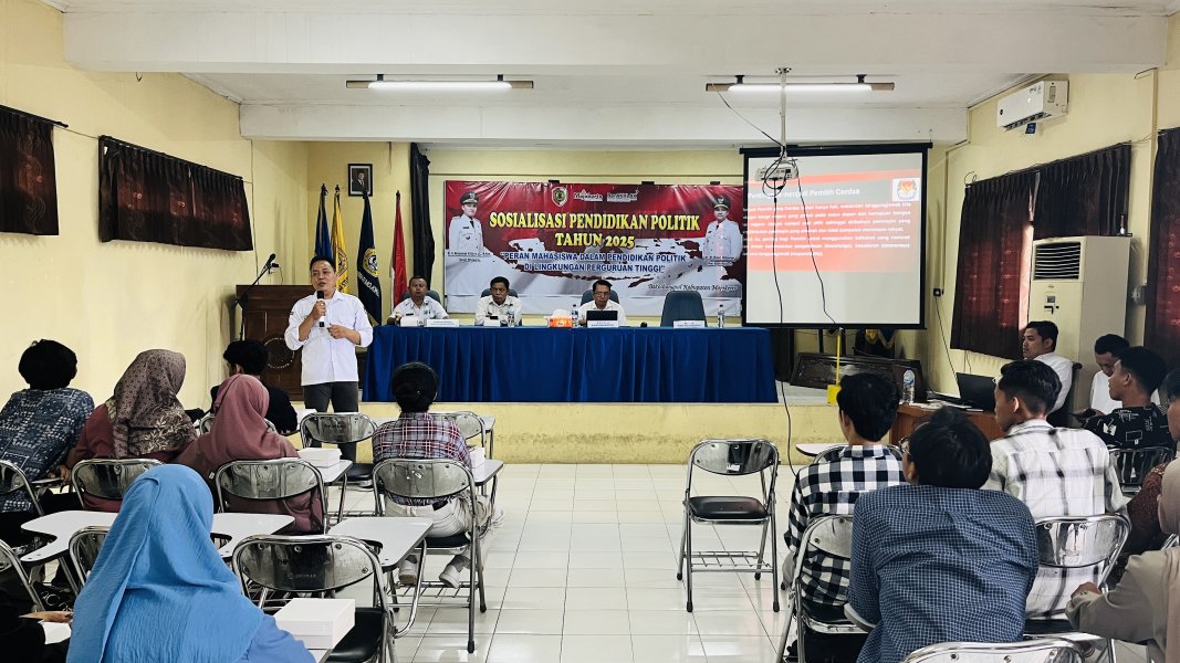 Sosialisasi Pendidikan Politik Tahun 2025. Peran Mahasiswa Dalam Pendidikan Politik di Lingkungan Perguruan Tinggi. Bakesbangpol Kabupaten Mojokerto undang Anggota KPU Kab