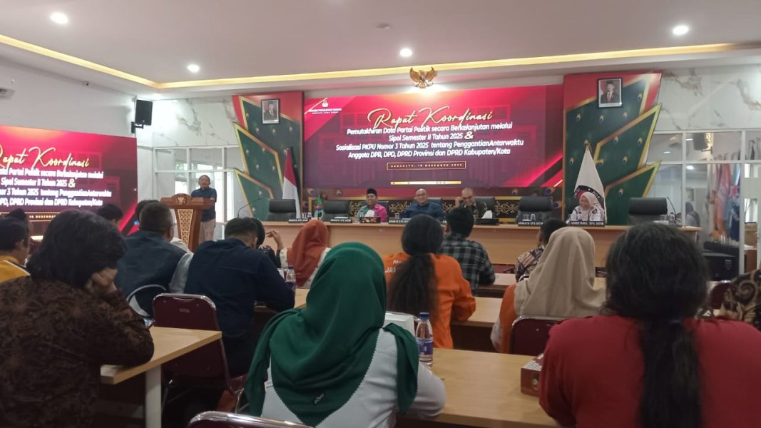 Rapat Koordinasi Pemutakhiran Data Parpol secara Berkelanjutan melalui Sipol Semester II Tahun 2025 dan Sosialisasi PKPU 3 Tahun 2025 tentang PAW Anggota DPR, DPD, DPRD Provinsi dan DPRD Kab/