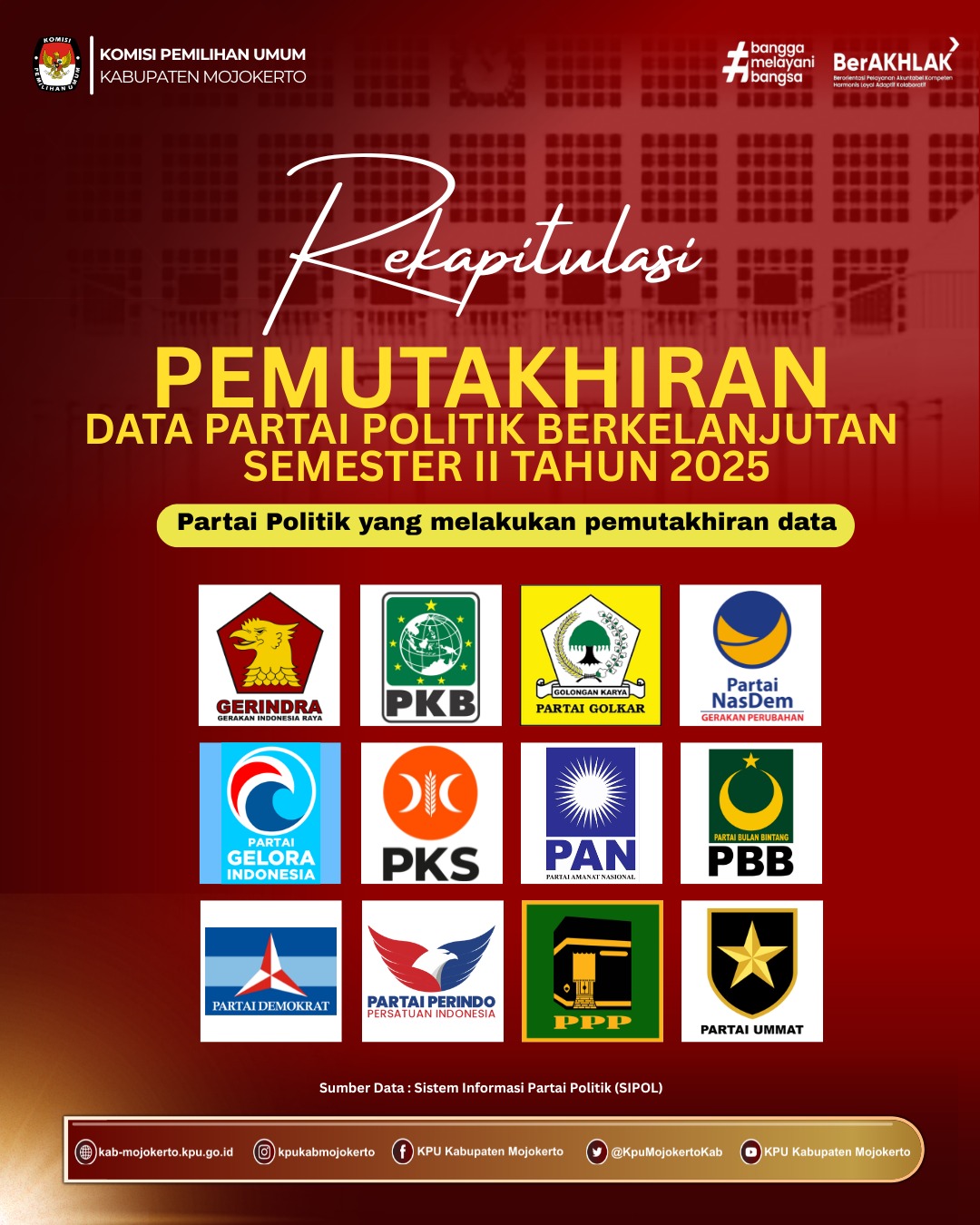 Rekapitulasi Hasil Pemutakhiran Data dan Dokumen Partai Politik secara berkelanjutan melalui Sipol Semester 2 Tahun 2025